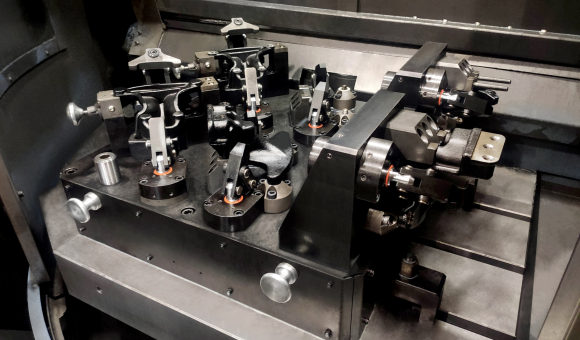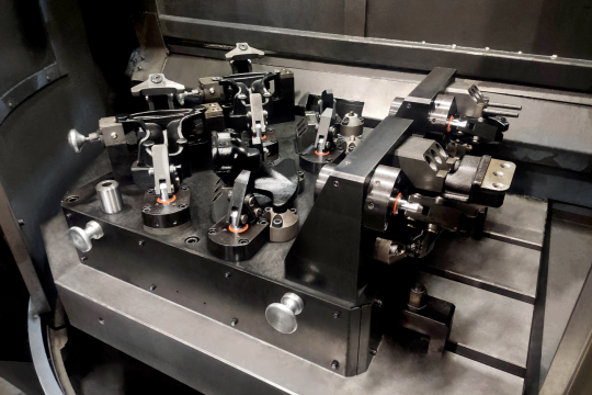 Мы разрабатываем, изготавливаем и внедряем специальную оснастку по ТЗ заказчика. Имеется ввиду как полностью автоматическая гидравлическая зажимная оснастка, работающая от команды с ОЦ, так и оснастка с ручным зажимом заготовки.